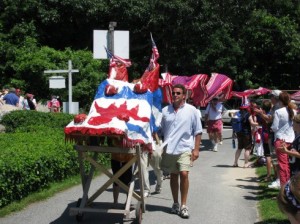 There is nothing like a parade, especially on the 4th of July, and especially in Falmouth, which boasts a number of neighborhood parades. My family and I have been participating in the Moores Parade for several years now, me on flute, my son and daughter in playing sax and clarinet in various years, and my husband joining in on drums on occasion. It has always been a very festive parade, ending up back the home of Fran and Walter McLean for a wondrous potluck feast.
