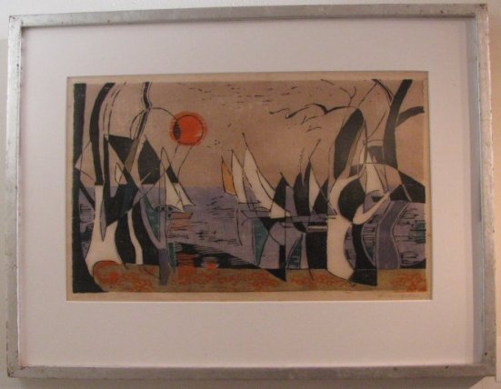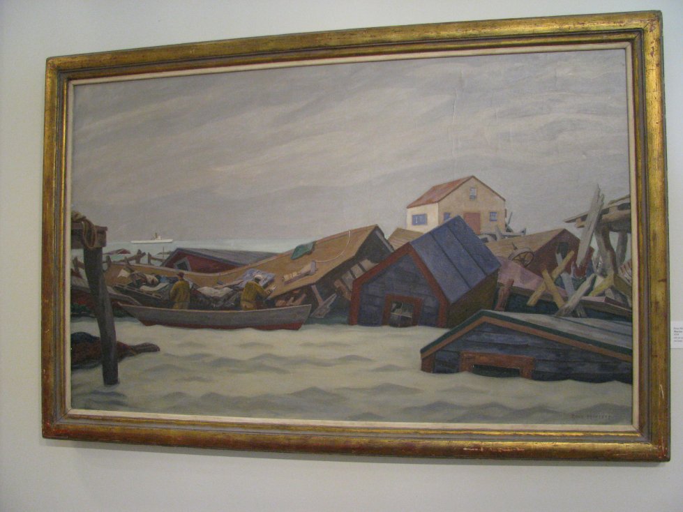 Jamie Wolf, artistic director of the CCtfA, selected the paintings and arranged them in chronological order around the walls of the gallery, providing a journey through time and artistic style. The show begins with classic realistic representations of ships at sea and includes American impressionism, expressionism, cubism, modern, and contemporary looks at the sea and the ships that sail upon it. There are peaceful seaside scenes and nautical disasters, graceful sailboats and work ships that have seen better days, solitary boats in the sunset and clusters of rowboats and ships, boats in safe harbors and in rough seas. The variety is rich and imaginative, and the journey is educational as well as visually appealing.