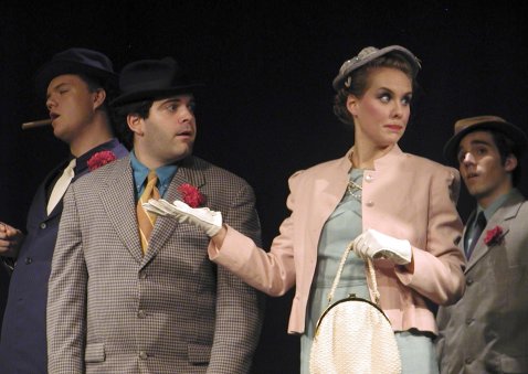 Miss Adelaide (Brynn Lewallen), Nathan’s fiancée of 14 years, arrives with an anniversary present for him, the card reading, “Sugar is sweet, and so is jelly, put this belt around your belly.” Ms. Lewallen shines in this role, giving Miss Adelaide a sweet saintliness as well as a streetwise sensibility.