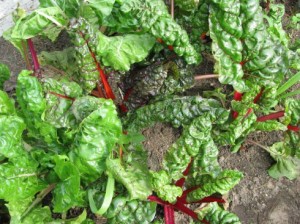 I’ve made lots of salads, a strawberry-rhubarb pie, and cooked vegetables I have never cooked before, like beets, and discovered vegetables I have never used before. Like Swiss chard. I’ve never cooked it before, never really noticed it before, but when I found it growing in the field, so bright and colorful, I decided to give it a try.