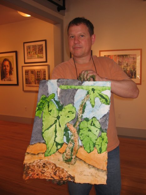 All of this took only an hour or so, making it all look so easy, but I am guessing that my first efforts might result in a sodden lump of rice paper, not a work of art. Still, I might give it a try. Krenik has a larger and more complicated watercolor bath painting at the New England Watercolor Society show, now at the Cotuit Center for the Arts. For more information on Krenik, see his website.
