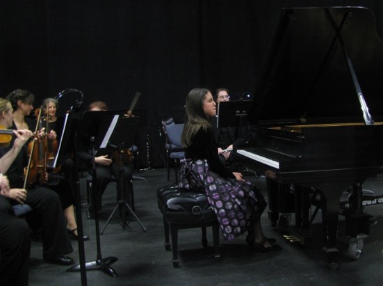 The young prodigy did brilliant job, performing the half-hour concerto from memory, with seeming ease, confidence, and a love of the music and the whole experience. It was her first time playing with an adult orchestra, and she loved every minute of it.