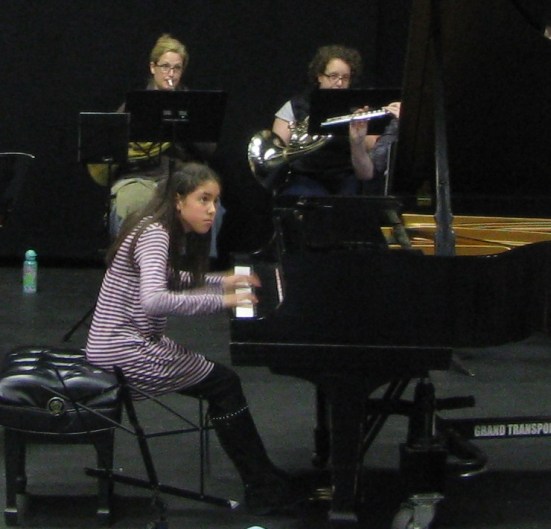 Her teacher, Wha Kyung Byun, assured Yankee that Brittany was qualified and capable, and she and her parents were agreeable, even though this is a very busy weekend for Brittany. In addition to two rehearsals with the orchestra and concerts on Saturday evening and Sunday afternoon, she has classes to attend, and is performing the Mozart concerto Sunday morning for the concerto competition. (She is one of seven finalists in this competition for pianists under 12.)