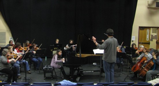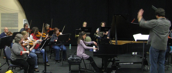 At her first rehearsal with the orchestra Thursday night, she played beautifully and confidently, and enjoying the interplay of the piano with the orchestra, which she told me was the best orchestra she had ever played with. John Yankee was clearly equally delighted with her, as were members of the orchestra. He did have to ask her to slow down her performance of the very fast final movement so that the orchestra could keep up. “Could you do it just a little slower,” he asked, “but just as thrilling and exciting?” And she did.