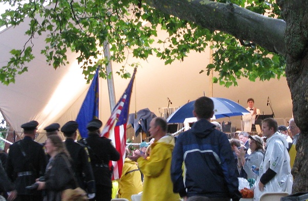 The Farrellys were followed by the Patriotic Sing-Along, which I chose to sing along with, rather than record. Sing-alongs are always fun, but this one was bonding and uplifting as well, as the soggy crowd got a chance to participate in the festivities.