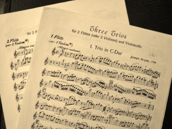 It was a Tuesday, and on Tuesday evenings I had a standing rehearsal with our trio: 2 flutes and a cello. We were playing Haydn’s London Trios. I played first flute, Paul played second flute, and Eric played cello. I loved these trios, still love them. They are easy, as chamber music goes, but Paul and I were having problems staying together. Eric, a much better cellist than we were flutists, was patient and helpful. He played with a strong, rich certainty, and I always had the feeling I was playing amid a wonderful “cello forest” of sound. (At the time I had just recently started cello lessons myself, and now I play the cello on these trios with another group of musicians.)