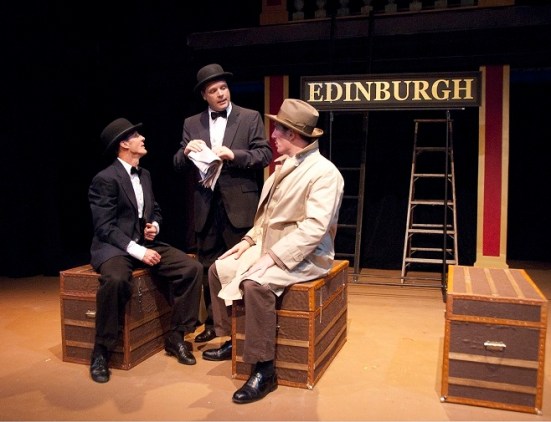 The action shifts from London to the highlands of Scotland, from the theater to a train, to a farm house, a mansion, a police station, and more, with just a hint of props and stage furniture.