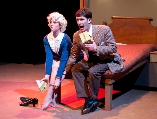 “Alfred Hitchcock’s The 39 Steps,” at the Cotuit Center for the Arts, gets off to a slow start, as Richard Hannay (played by Tom Myers), resting comfortably in an overstuffed chair, explains to the audience why he, a Canadian, happens to be in London and why he decided, one evening to do something “something mindless and trivial, something utterly pointless” one night–go to the theater.