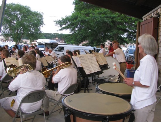 All Town band concerts begin at 7:30 PM every Thursday throughout the summer. They are held at the Music and Arts Pavilion, also known as the Oscar Wolf Band Shell, on Scranton Avenue on Falmouth Harbor.