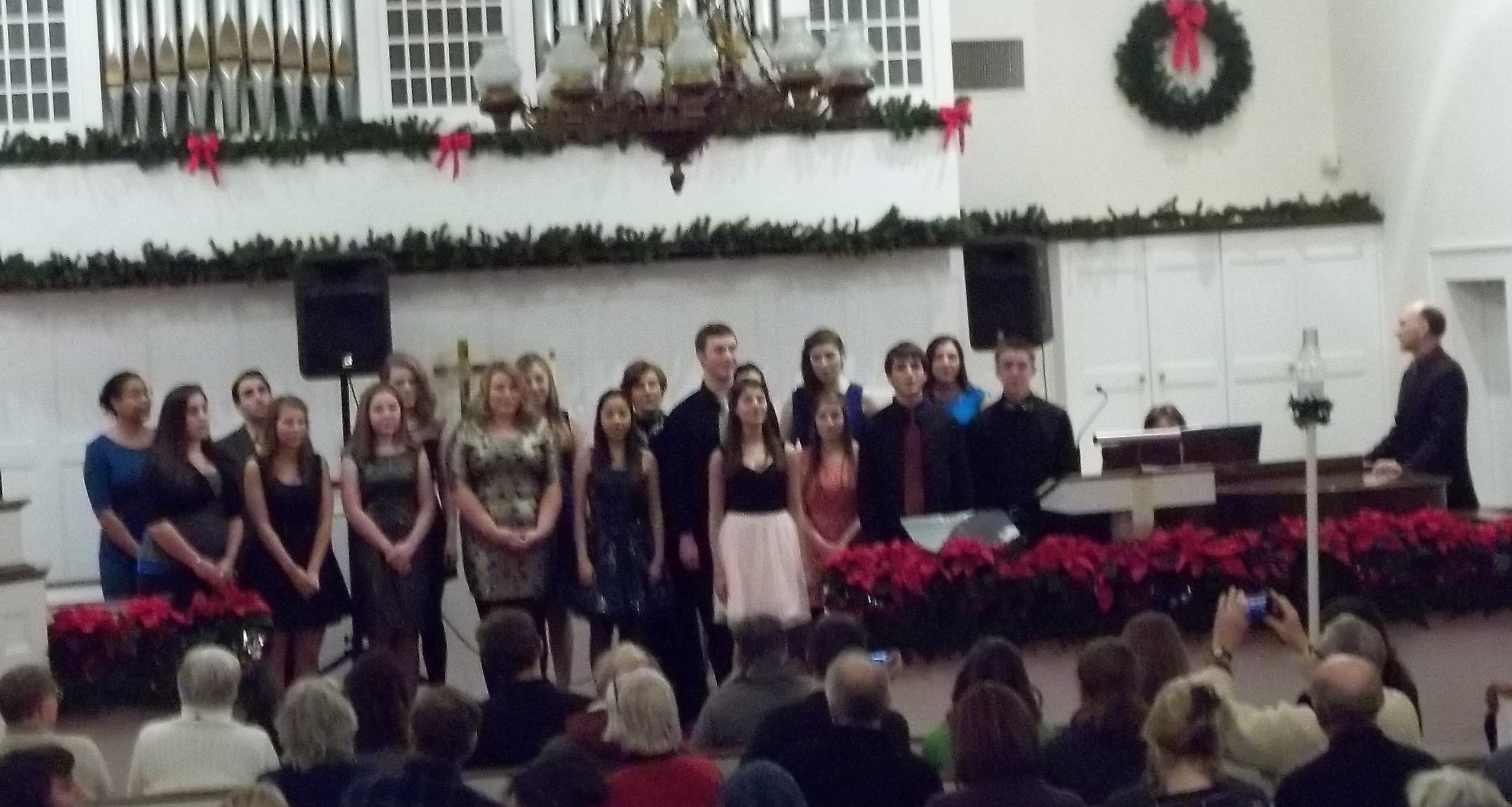 John Murelle’s vocal students performed songs of Richard Rodgers at First Night Chatham on December 31 at the First Congregational Church of Chatham. In addition to John’s regular students (including my daughter Gabbe Rowland), there were two former students of John’s: Matt Astone, now in his senior year at Westminster Choir College, and Lily Mae Harrington, who dropped out of Westminster Choir College last fall (2011) to compete in the Glee Project for a chance to appear on the television program, “Glee.” “The Glee Project” ran weekly last summer, with one hopeful contestant tearfully eliminated each week. Lily Mae made it almost to the end. She was home for Christmas and New Year’s, but has decided to remain in L.A. to try to make it as an actress.