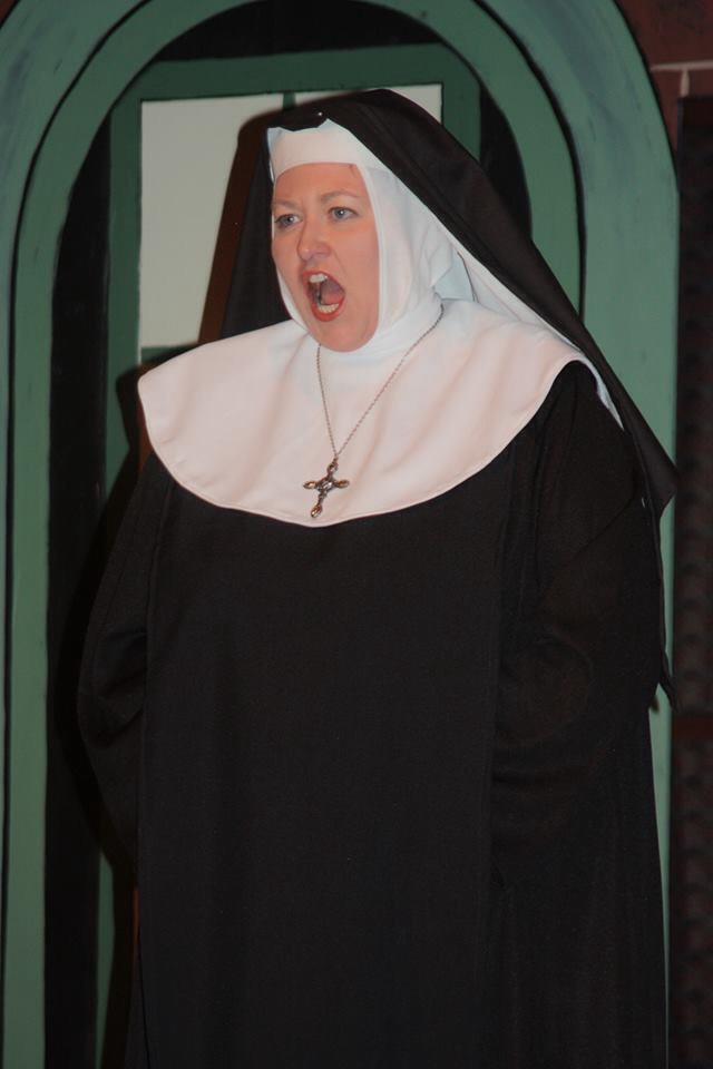 The play opens with a view of Nonnberg Abbey—seemingly solidly constructed of tan stones and multiple stained glass windows. The nuns enter through the sides of the theater, their ethereal singing lifting all hearts. Maria is missing, of course, off in mountains, singing.