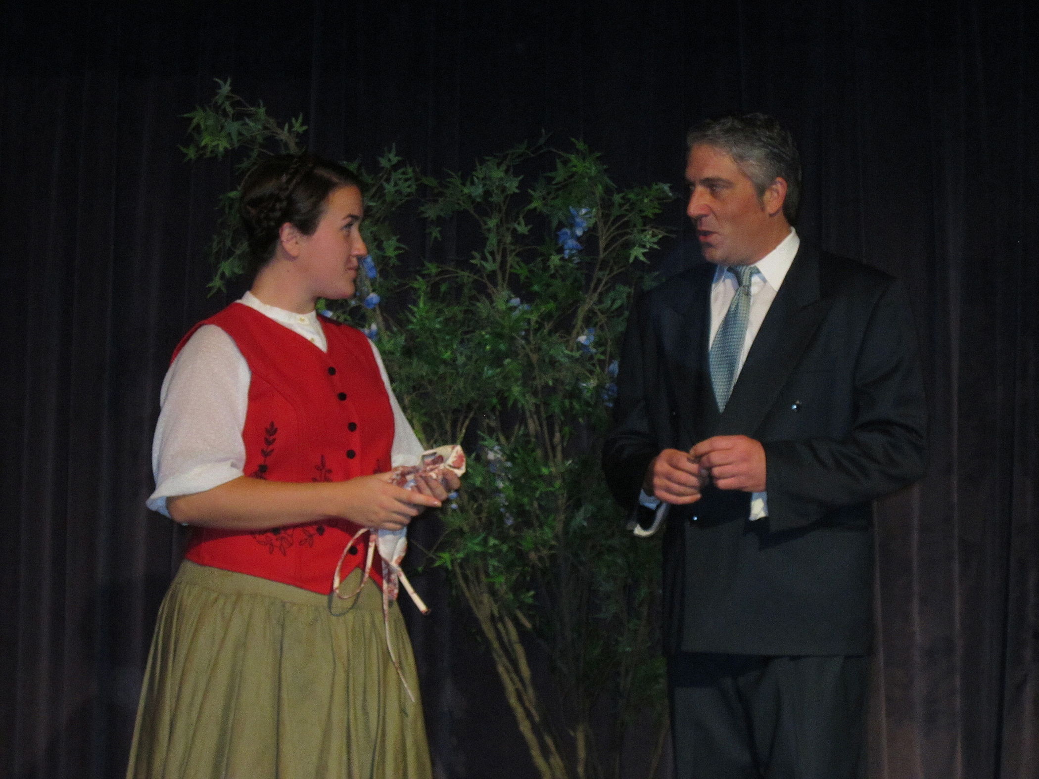 Max Detweiler is often seems to be a minor character in the show, or one whose main function is to symbolize appeasement of the Germans, as in the raucous “No Way to Stop it.” In this production Batzer creates a Detweiler who is a loud and broadly comic character, reminiscent of a Jewish vaudeville performer. He is very significant to the plot, both collaborating with the Nazis for practical reasons and helping the von Trapps to escape.
