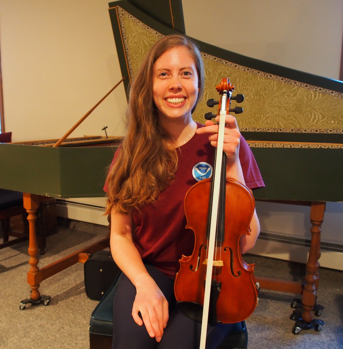 Violinist Kirstin Meyer, a marine biologist at Woods Hole Oceanographic Institution, will perform in the Falmouth Chamber Players Orchestra’s Musicale on May 21, 3 PM at John Wesley United Methodist Church. She moved to Falmouth about six months ago and was “delighted to find a robust chamber music community on the Cape.” She enjoys all types of music (Baroque, Classical, Romantic), but her favorite composer is Philip Glass, known for his minimalist style.