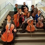 39 Cellists to Perform at Woods Hole Community Hall November 2 » BoCoCelli on stairs