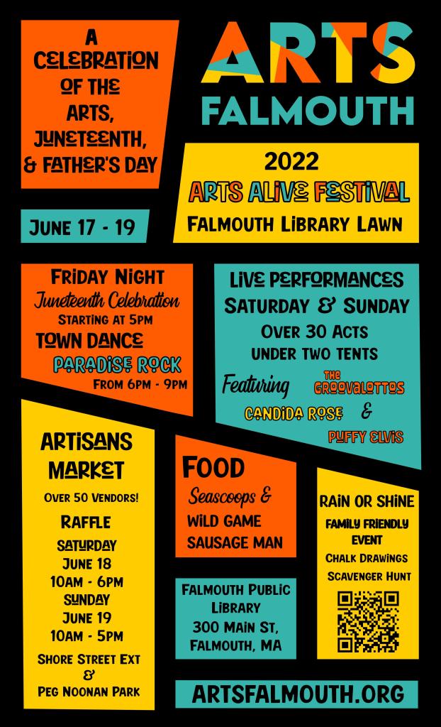 This year, ArtsFalmouth, Inc. is collaborating with the Falmouth Public Schools, the Cape Cod Cape Verdean Cultural Center and Museum, No Place for Hate, AmplifyPOC Cape Cod, and other organizations and individuals to celebrate Juneteenth, which falls on June 19.