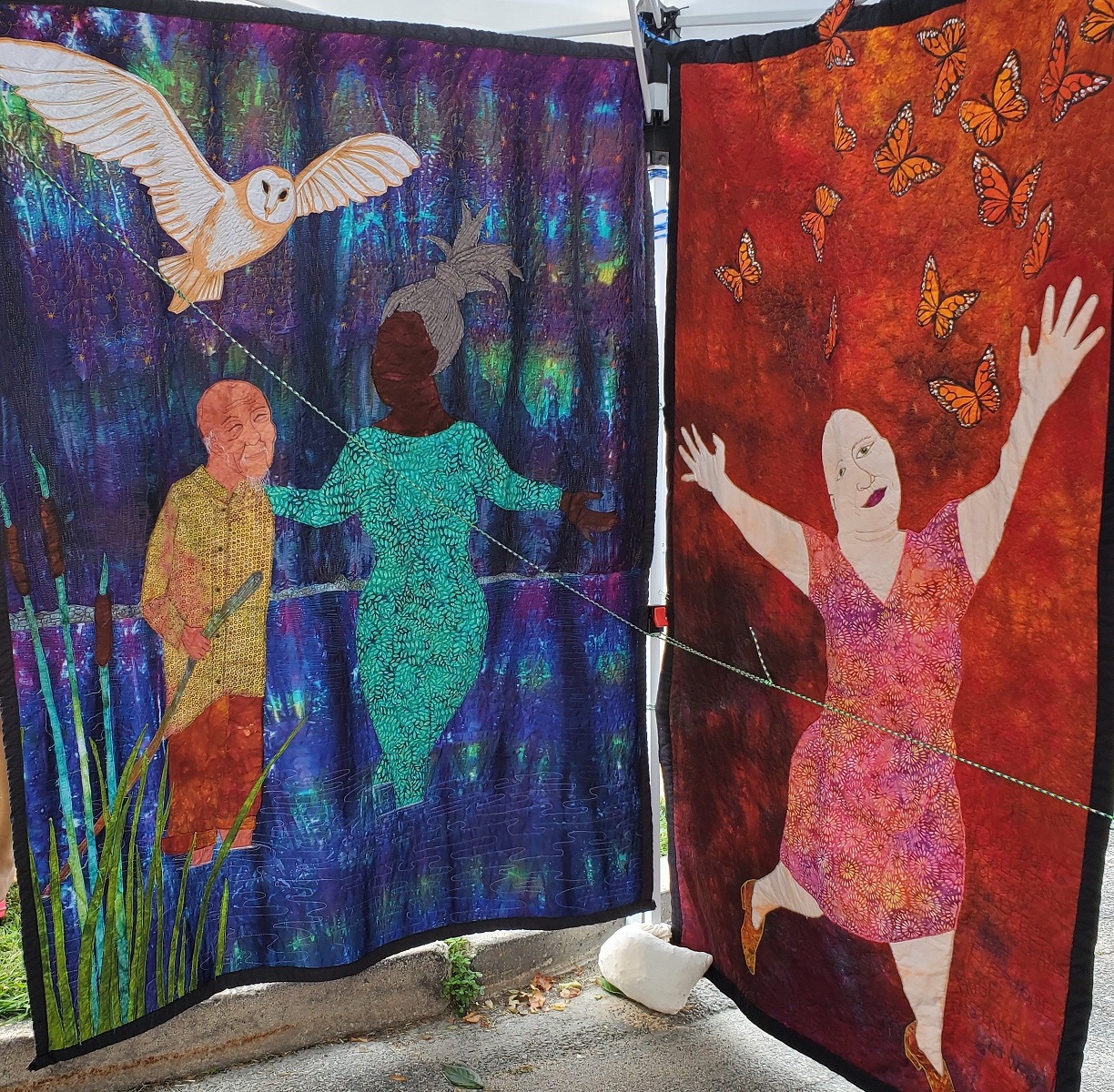 Melissa Oliveira of Bzzyfingers makes fabric items, including zippered bags, covered notebooks, keychains, and baby items. At Joyful Glorious, Amy Riley offers large and small quilts, sun hats, quilted bags, resin rings, and prayer flags.