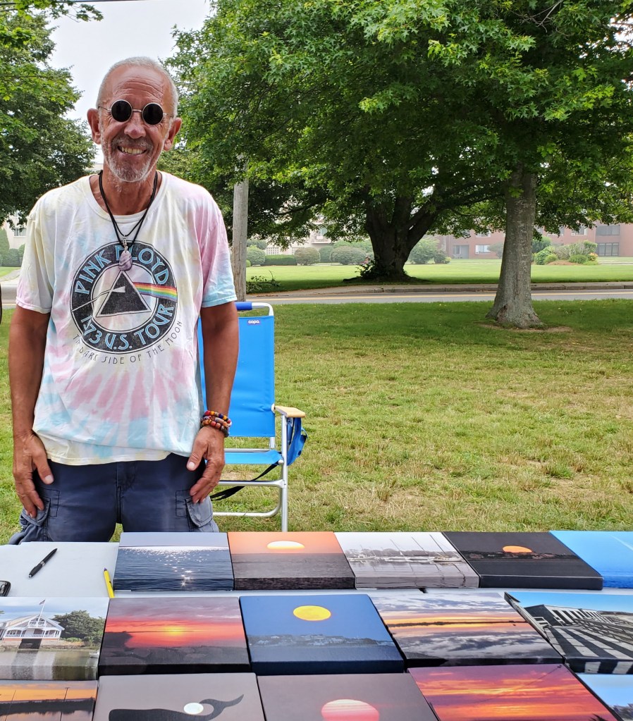 Photographer Joe Freedman is one of the regulars at the ArtMarket. He specializes in scenic views taken in the town of Falmouth. He transfers the photographs to canvas, giving them the look of realistic oil paintings.