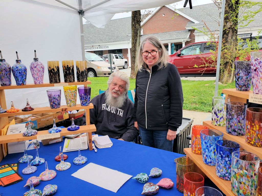 Gratitude Juice offers macrame wall hangings and plant hangers and ceramic mugs, pitchers, and more. Elias Studios makes blown glass hummingbird feeders, tumblers, ornaments, and more. Heavenly Light Crystal Creations has crystal suncatchers and keychains. Craft-Tine, offers handmade paper products: cards, gift boxes, and wreaths,