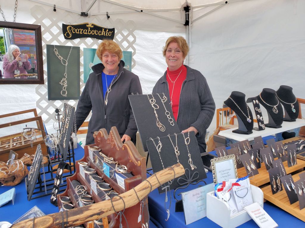 Returning Arts Alive vendors include many jewelry artists: LjBjewelry hand-fabricates sterling silver and mixed metal jewelry. House of Stone and Metal works with beach stones, creating Viking rune-inspired pieces and leather accessories. Cape Cod Octopus’s Garden creates silver and sea glass jewelry, and Carole’s Jewelry Design makes jewelry from quahog shells, sea glass, and resin.