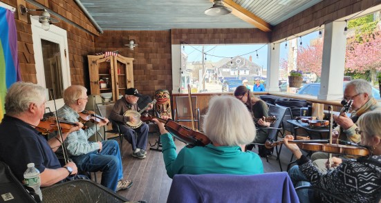 Blue Train performs bluegrass, Texas swing, gypsy jazz tunes and more on fiddle, banjo, mandolin, guitar, and bass at 2 PM at Pie in the Sky Bakery & Café, 10 Water Street. At 3 PM, the Familiars of Cape Cod, featuring Manny and Linda Dias, Frank Carotenuto, and Bob Nelson, will perform folk, fiddle, country, and Americana music outside at Woods Hole Historical Museum’s Small Boat Museum.